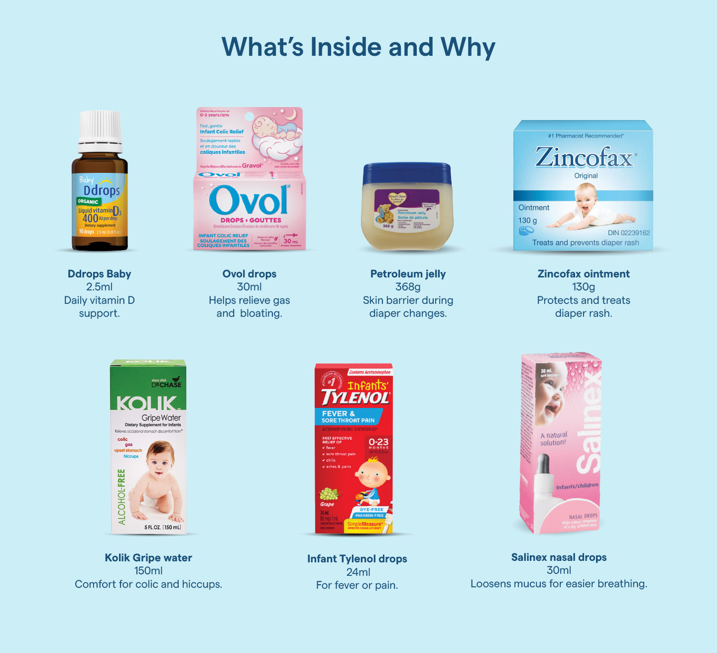 - All-in-one newborn medicine bundle: Everything you need for basic infant care in one box