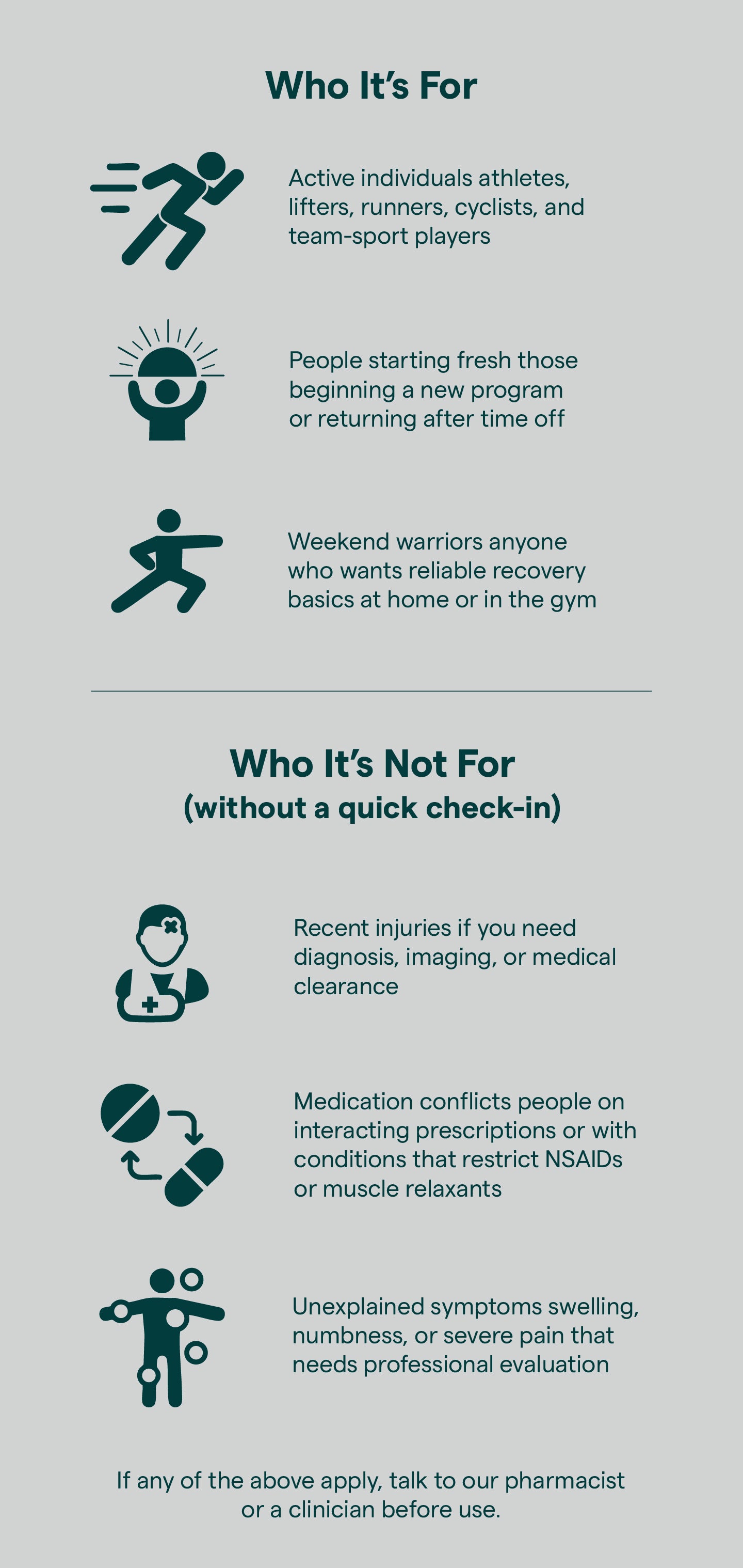 Whether you’re bouncing back from a tough workout, managing muscle aches, or staying on top of your game, this kit makes recovery simple and effective.