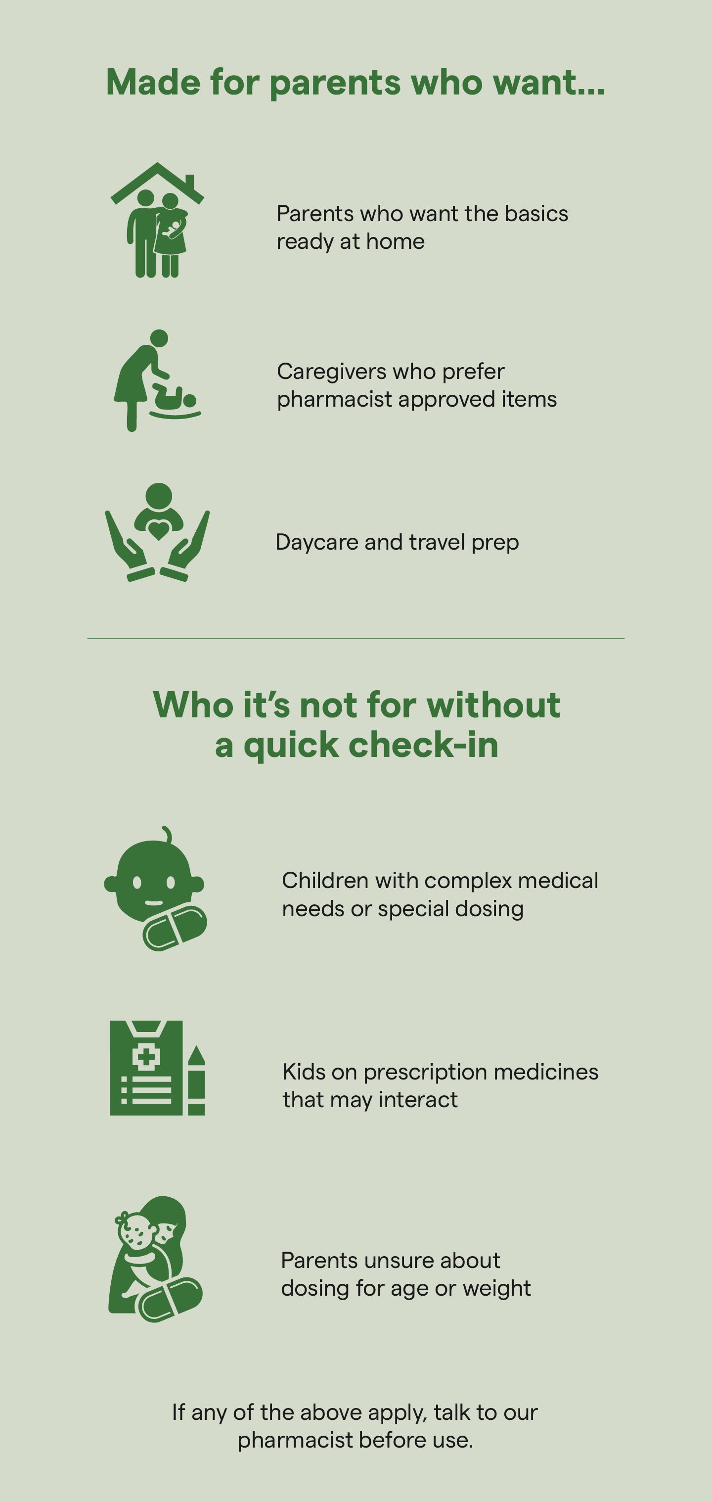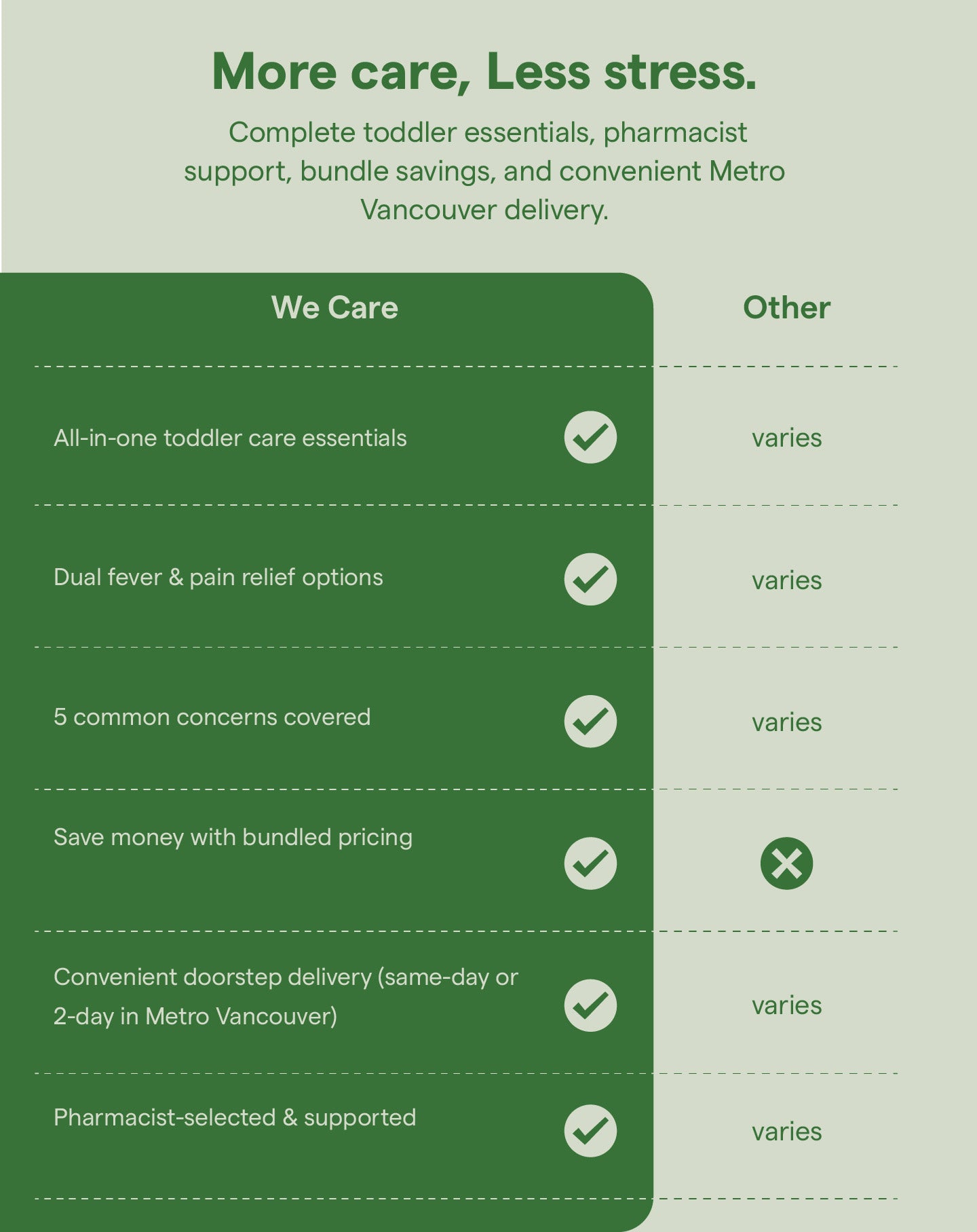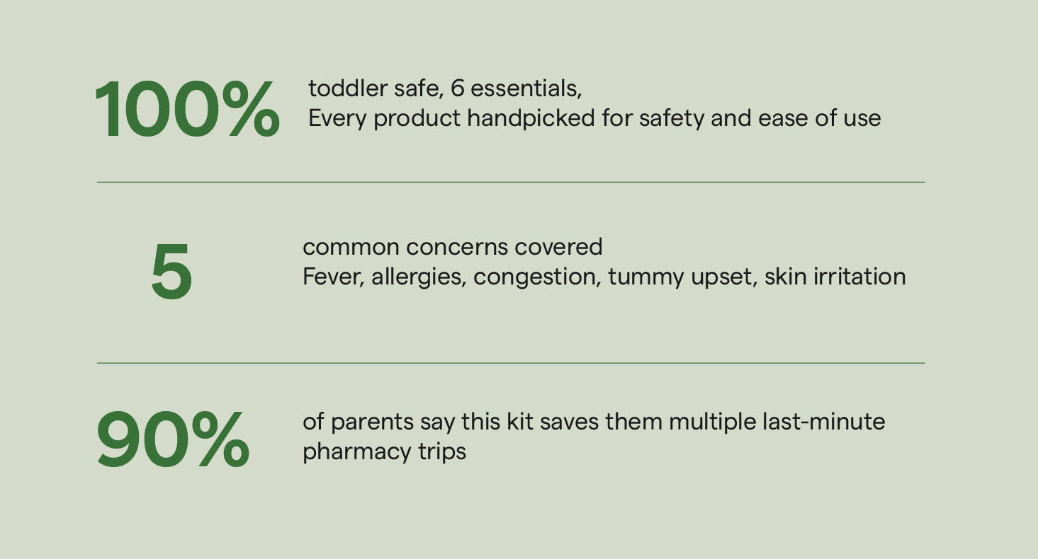 Each item is selected for toddler safety, ease of use, and effectiveness, so you can focus on comfort and care, without last-minute pharmacy runs.